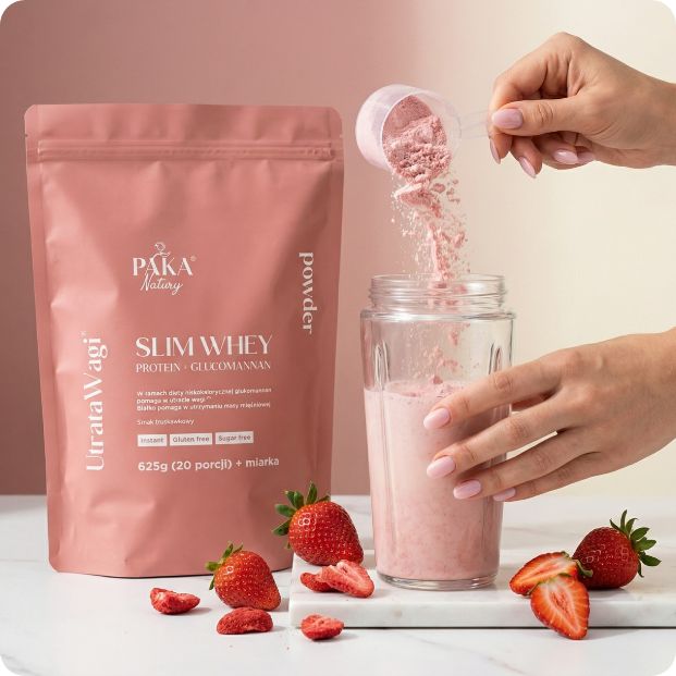 Białko Slim Whey Protein + Glucomannan (smak truskawkowy) 625 g (20 porcji)